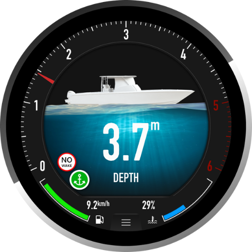 The E360 features a smart, intuitive interface designed for effortless navigation, just like a smartphone. This space-saving, multifunctional gauge provides real-time data from NMEA2000 compatible sensors, including engine monitoring, battery status, GPS, depth readings, and more, all within a compact chartplotter.